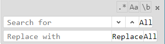 サブメニューから「検索」を選ぶと検索用ダイアログが表示され、「置換」を選ぶと置換用ダイアログが表示されます。