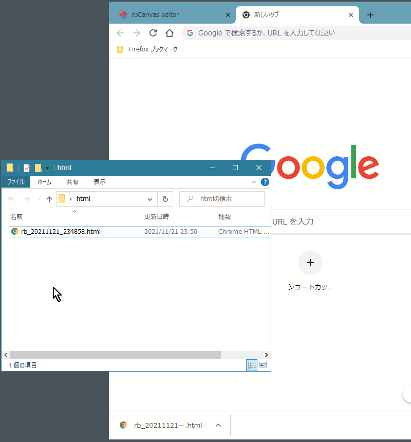 保存した HTMLファイルをダブルクリックすると、そのままブラウザ上でプログラムが実行されます。